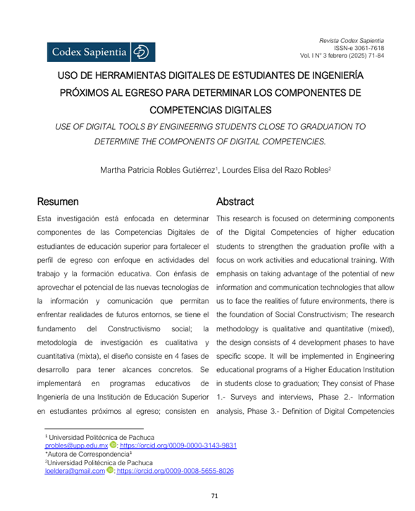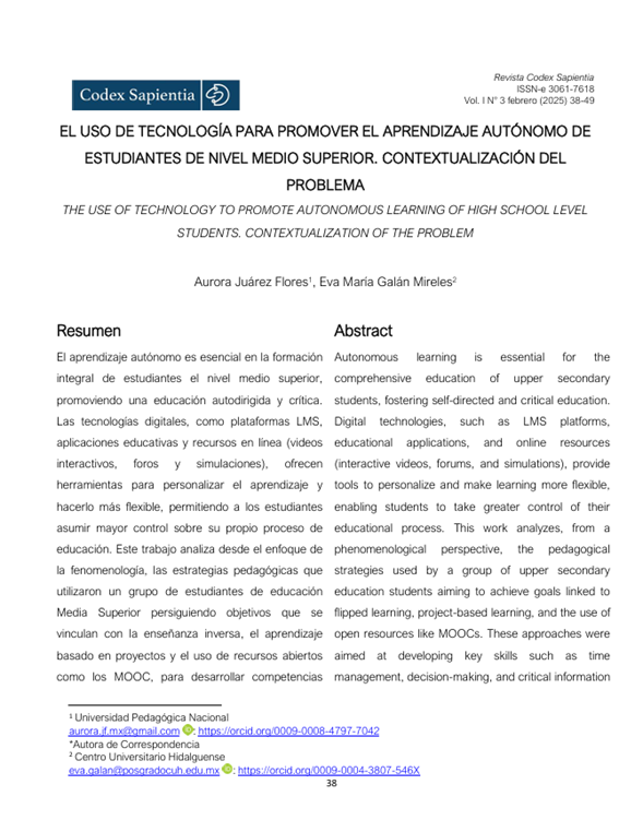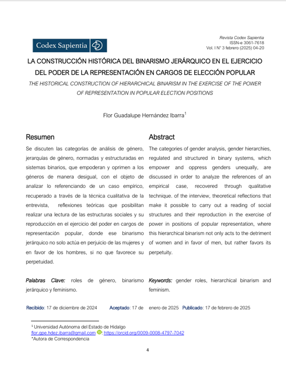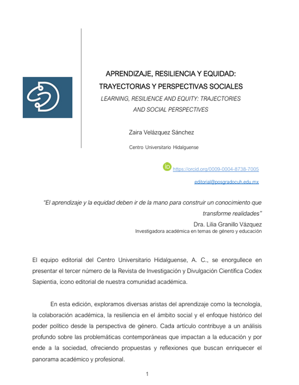 Este número de Codex Sapientia aborda la intersección entre educación, equidad y tecnología. Desde la construcción histórica del poder político con perspectiva de género hasta el impacto de la resiliencia en profesionales de la salud, esta edición explora cómo el conocimiento puede transformar realidades. Además, analiza el uso de herramientas digitales en el aprendizaje y el trabajo, así como la colaboración académica entre instituciones. Con estos estudios, la revista busca enriquecer el debate y fomentar una educación inclusiva y reflexiva.